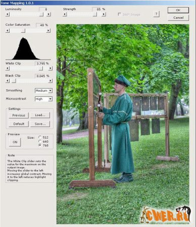 Все было бы совсем плохо, если бы не существовал отдельный плагин к PHOTOSHOP , под названием Tone Mapping, выпущенный фирмой MultimediaPhoto SARL, за что ей отдельное спасибо. Давайте запустим его и посмотрим, что получится.
