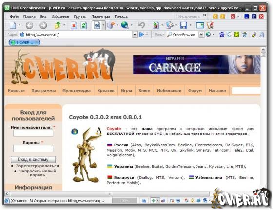 Скачать GreenBrowser 5.0.0509 (1,10 МБ):
