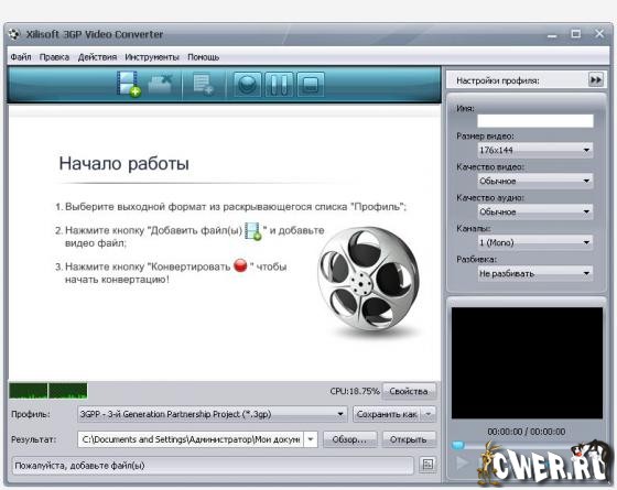 Xilisoft 3GP Video Converter - конвертер MPEG, VOB, AVI, DV, MOV, анимационный GIF, swf, MPEG4, RM, WMV, ASF, WAV, WMA, MP3, 3GP, m4a, mp4, h264, MP2, OGG, m4v в популярный и хорошо понимаемый смартфонами и мобильными телефонами формат - 3GP, и соотвественно в обратном направлении 3GP в MPEG, AVI, VOB, MPEG4, WMV. Программа позволяет пакетный режим конвертирования, выбирать и настраивать аудио и видео кодеки, есть предварительный просмотр во встроенном проигрывателе.