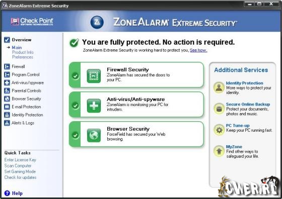 ZoneAlarm Extreme Security - антивирусная программа, которая включает все функции ZoneAlarm Internet Security, а также интегрированную комплексную веб-защиту ZoneAlarm ForceField - защиту от фишинга, опасных загрузок, подозрительных веб-сайтов и т.д.