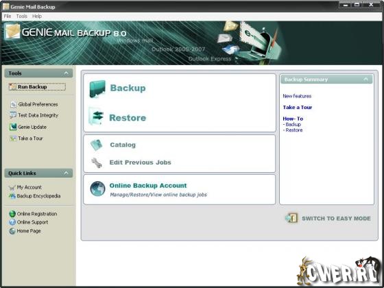 Genie Mail Backup - программа для создания резервной копии и восстановления данных из Outlook 2000-2007, Outlook Express и Windows Mail. Программа также позволяет резервировать настройки Windows, файлы и многое другое на локальном или удаленном диске, включая внутренние и внешние жесткие диски, FTP, сеть, оптические носители, сменные носители, USB флэш память, REV диски. Genie Mail Backup - это надежное резервное программное обеспечение, которое гарантирует прочную безопасность, используя U.S. Advanced Encryption Standard 128-bit (AES). Это решение предоставляет высокую производительность со встроенным Open file резервным агентом, и доступность с опцией для поиска, извлечения, и просмотра скопированных элементов без необходимости восстановления данных. Комбинируя Genie Outlook Backup и Outlook Express Backup в одном продукте, Genie Mail Backup обеспечивает более быстрое использование, мощную функциональность и высокую производительность.
