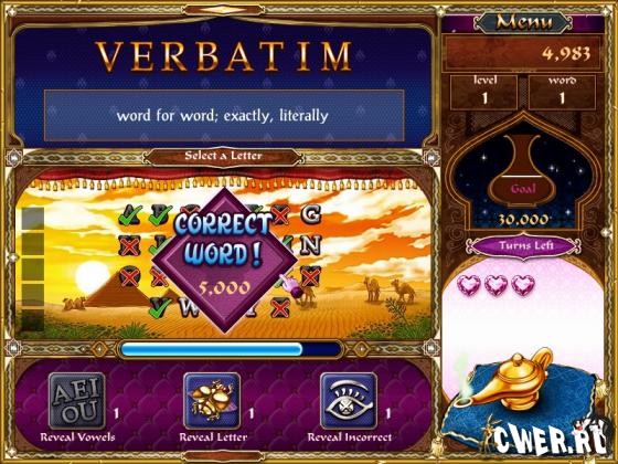 Расшифровывайте тайны слов, угадывайте слова на время и помогите несчастному джинну восстановить магические силы.