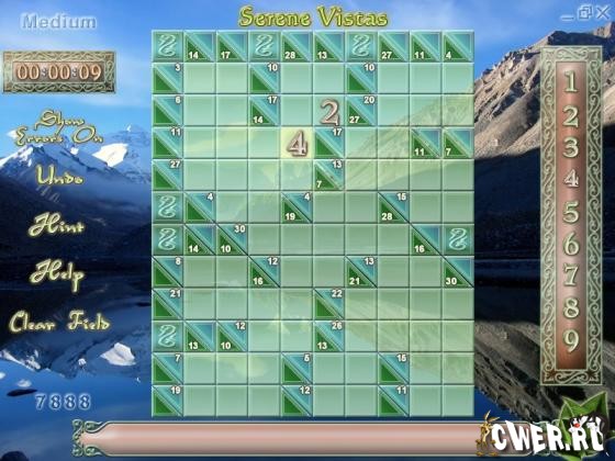 Суть игры заключается в заполнении пустых клеточек игрового поля числами от 1 до 9. Нужно добиться такой ситуации, когда при полностью заполненном поле суммы по вертикали и горизонтали будут равны числам в соответствующих рядах и колонках. Диагноз - ёршик для мозгов...