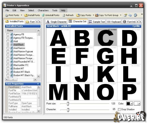 Printers Apprentice представляет из себя потрясающий менеджер шрифтов для операционных систем Windows. Если вы являетесь художником, профессиональным публицистом или просто программным энтузиастом, и если у вас на компьютере имеется большое количество разнообразных шрифтов, то данная программа поможет вам в организации вашей коллекции. Программа поддерживает работу с шрифтами форматов TrueType, Adobe Type, и OpenType. С помощью этой утилиты вы сможете просматривать, сравнивать и выводить на печать ваши шрифты, установленные в системе. Также программа позволяет просматривать шрифты в указанных директориях, которые еще не установлены в систему, но хранятся на жестком диске - для этого в программу встроен браузер для просмотра шрифтов из указанного хранилища. Вы можете устанавливать и удалять шрифты намного быстрее, проще и удобнее с данной программой, чем это делаете через панель управления.