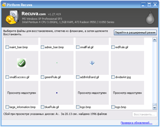 Recuva - небольшая бесплатная утилита, которая предназначена для восстановления файлов, удаленных с ПК случайно или потерянных в результате программного сбоя или ошибки в работе приложений. Проста в использовании, не требует специальных знаний для успешного использования.