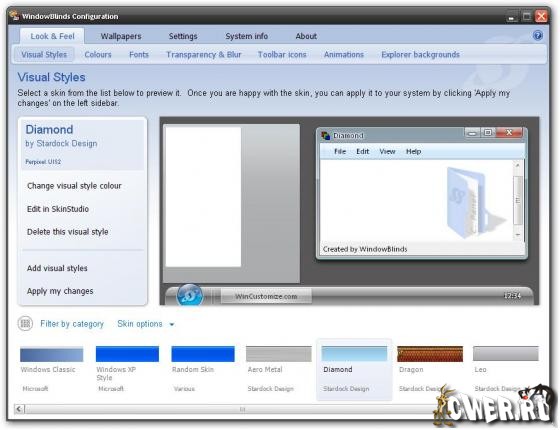 WindowBlinds – программа, предоставляющая пользователям возможность полностью изменять графический интерфейс Windows посредством установки "скинов" - тем визуального оформления. Она включает такие полезные функции как: поддержку сворачиваемых кнопок (roll-up buttons), расположение кнопок поверх других объектов (always-on top buttons), ссылки и многое другое. Стили визуального оформления в WindowBlinds способны обеспечивать анимацию, звуковое сопровождение, альфа-прозрачность панели задач, изменяемые иконки на панели инструментов.