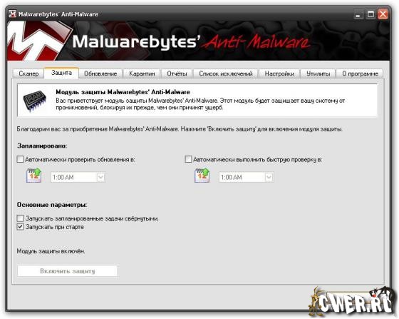 Malwarebytes Anti-Malware - новая версия программы от создателей RogueRemover Pro, AboutBuster и других популярных утилит, способная находить и удалять разнообразные вредоносные программы. Программой используется эвристический метод сканирования, позволяющий в реальном времени контролировать безопасность всей системы. Также имеется возможность полного сканирования всех дисков. Помимо этого, в состав данной программы входят дополнительные утилиты, предназначенные для удаления вредоносных программ вручную. Обладает понятным пользовательским интерфейсом с многоязычной поддержкой, включая поддержку русского языка.