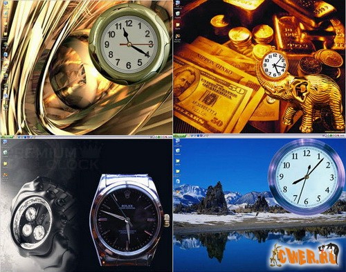 Скиновые полноразмерные часы на вашем десктопе: аналоговые, цифровые. Часы имеют большую коллекцию скинов, которые могут быть скачаны с сайта производителя; автовыбор скинов по таймеру, изменение масштаба и пр. Цифровые часы имеют произвольный формат отображения времени. Также: календарь, мощная поддержка будильников, запуск событий из трея, полное изменение часов в трее с выбором произвольного формата отображения времени, изменение панели задач и многое другое.