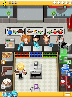 В данной игре вы должны будет обслуживать посетителей, наливая им кофе и подавая пирожные. Но не стоит медлить: клиенты не любят долго ждать! Заработайте как можно больше денег, насколько это возможно, а затем вложите их в модернизацию вашего магазина. Размеры экранов: 128x128, 176x220, 240x320.