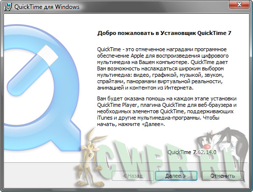 Скачать QuickTime 7.62.14 Professional (21 МБ):