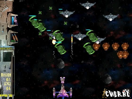 В Ваш боевой арсенал входит основное оружие и ракеты - это, несомненно, поможет Вам уничтожить пришельцев либо заморозить их на некоторое время. Между уровнями игры Вы сможете улучшать свой корабль и разработать свой план действий.
