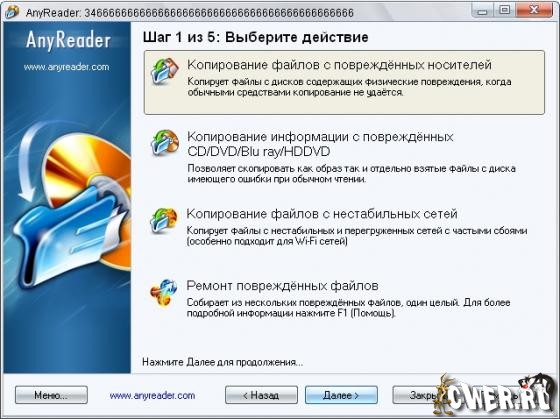 Часто необходимо считать данные с поврежденных "флешэк", дискет, поцарапанных DVD/CD-дисков, ненадежных сетей LAN (Wi-Fi). Обычными средствами это будет сделать, скорее всего, невозможно. Для таких случаев и существует программа AnyReader, которая выручит вас в подобной ситуации и легко прочитает, казалось бы, уже потерянную ценную информацию с любых носителей, которые доступны как буква диска в операционной системе Windows. Продолжение чтения (копирования) данных после возникающих ошибок или потери соединения в сети является уникальной возможностью программы AnyReader.