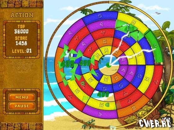 Эта игра очень похожа на игры жанра "match -3". Здесь Вам предстоит собирать от трех и более частей круга одного цвета. Используйте магический диск, чтобы узнать секреты таинственного острова...