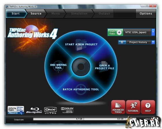 Скачать TMPGEnc Authoring Works v4.0.4.24 (110 МБ):