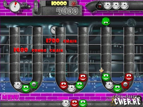 Вам предстоит нелегкая задача выстроить в ряд хотя бы три бусинки. Загвоздка в том, что игровые поля (всего их четыре) имеют форму изогнутых водопроводных труб, в которые следует поместить разноцветные значки.