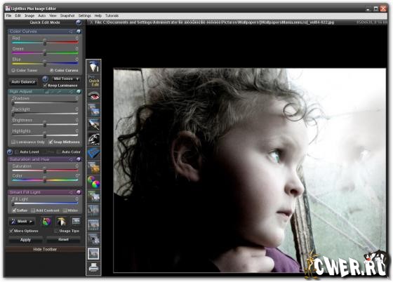 LightBox имеет продвинутый инструмент удаления эффекта красных глаз с новым продвинутым в использовании цветовым тонером (продвинутая технология Tint and Temperature) современным инструментом, использующемся в дорогих редакторах.