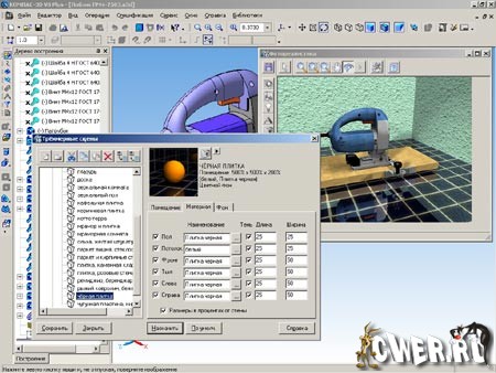 - Выбор материалов из широкого списка встроенной библиотеки (различные виды металлов, дерева, камня, пластика и многих других).