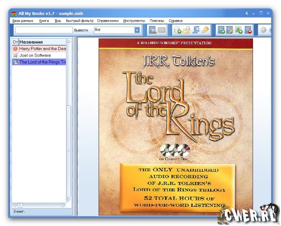 - поддержка аудиокниг - запустить книгу на прослушивание можно прямо из программы. Автоматически считываются тэги и заполняется карточка книги для форматов MP3, WMA, OGG.