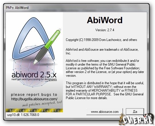 Скачать программу AbiWord 2.7.4 Dev (7,56 МБ):