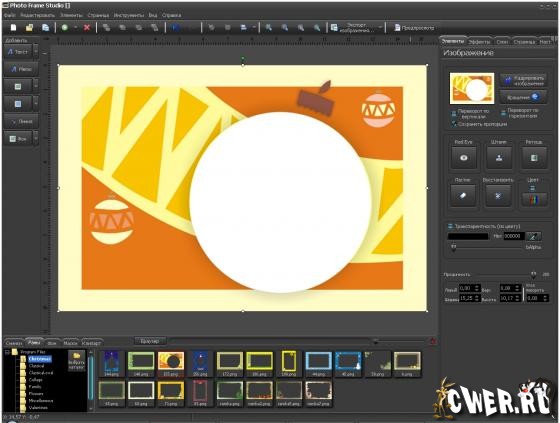 Photo Frame Studio - новая потрясающая программа от польского разработчика MojoSoft, созданная для редактирования и декорации цифровых фотографий. Программа предлагает вам воспользоваться сотней шаблонов рамок для украшения, каждая их которых может быть изменена по вашим индивидуальным требованиям, включая фоновые цвета и изображения. Интерфейс программы был создан с уклоном на то, чтобы каждый пользователь смог без проблем воспользоваться этой программой. Вы сможете украсить ваши изображения с помощью добавления к ним разнообразных рамок, масок, фонов, теней или текста. Кроме того, вы сможете создать вашу собственную композицию шаблона для дальнейшего использования. Также данная программа позволяет вам производить калибровку изображений, включая обрезку и увеличение изображений, а также удаление эффекта красных глаз. Интерфейс программы переведен на множество языков, включая русский язык.