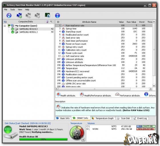 Easy to use user interface makes a hard disk monitoring a straightforward task.