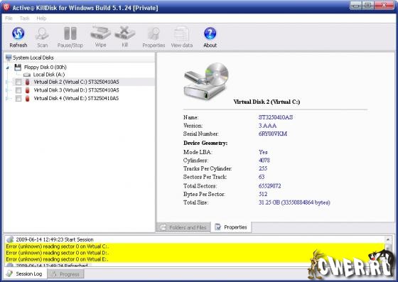 KillDisk - программа для полного уничтожения данных на вашем жестком диске без малейшей возможности последующего восстановления этих данных. Если вы используете стандартные утилиты для удаления файлов или форматирования дисков, то удаленные данные можно потом восстановить с помощью специальных программ для восстановления удаленных файлов. Однако, иногда нужно, чтобы данные были полностью уничтожены без возможности восстановления и для этого существует немало утилит. Но не все эти утилиты смогут полностью уничтожить данные. Active@ KillDisk является одной из лучших программ для полного уничтожения вашей информации, которая полностью уничтожит данные так, что последующее восстановление потом будет невозможным. Программа поддерживает устройства, подключаемые по интерфейсам IDE и SCSI. В результате обработки, накопитель заполняется ничего незначащими комбинациями единиц и нулей, надежно замещающими любые находившиеся на нем файлы.