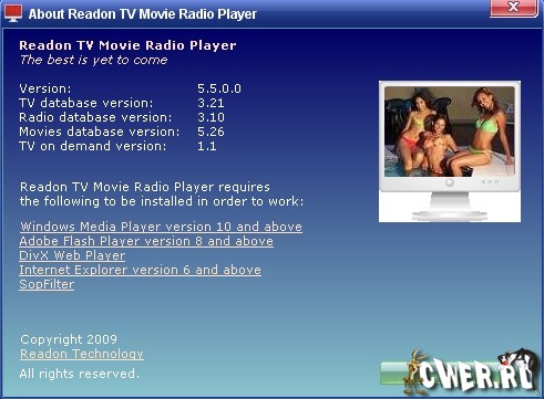 Скачать Readon TV Movie Radio Player 5.5.0.0 (3,44 МБ):
