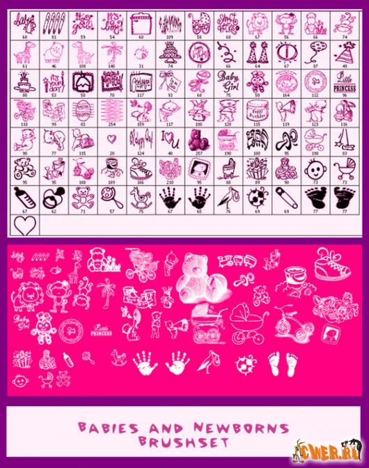 85 очаровательных элементов на тему деток и новорожденных размером от 50 до 250 пикселей