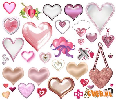 Клипарт с изображением милых сердечек красных и розовых тонов