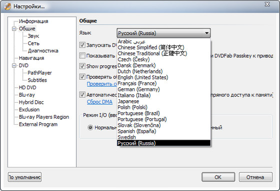 DVDFab - программа для копирования DVD и Blu-Ray дисков на DVD5/DVD9 и Blu-Ray диски с возможностями гибкой обработки видеопотока. Утилита является одной из лучших на сегодняшний день для копирования, разбиения, пережатия и конвертирования DVD дисков с фильмами. Снимает все защиты и ограничения с диска и, при желании, пережмет диск большой емкости и вместит его в обыкновенную пустую DVD болванку с минимальными потерями качества или разобьет фильм на два диска с полным переносом его меню, удалит всю рекламу, либо запишет только фильм и многое другое.