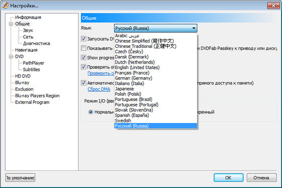 DVDFab – мощный, многофункциональный программный продукт для копирования DVD дисков с возможностями гибкой обработки видеопотока. Программа является одной из лучших на сегодняшний день, из инструментов для копирования, разбиения, пережатия и конвертирования DVD дисков с фильмами. Снимает все защиты и ограничения с диска и при желании пережмет диск большой емкости и вместит его в обыкновенную пустую DVD болванку с минимальными потерями качества (DVD9->DVD5) или разобьет фильм на два диска с полным переносом его меню, удалит всю рекламу, запишет только фильм и многое другое. Программа имеет интуитивно понятный, мультиязычный интерфейс включая русский.