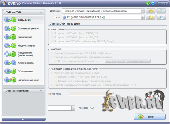 Oбновилась уникальная программа DVDFab - быстрый и простой способ для копирования DVD. Никакой потери качества. Программа является одной из лучших на сегодняшний день инструментов для копирования, разбиения, пережатия и конвертирования DVD дисков с фильмами.