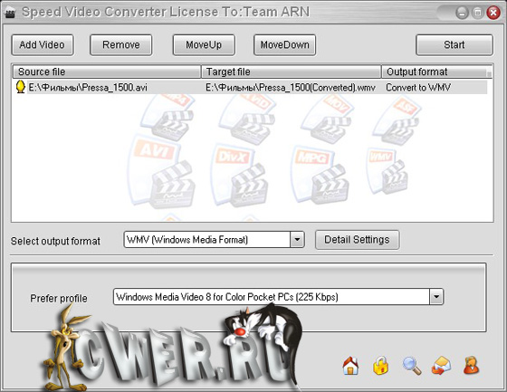 Маленький, высокоскоростной, с легким пользовательским интерфейсом, - это часто, самые сильные аргументы при выборе в пользу, того или иного видеоконвертора! Speed Video Converter быстрый конвертор видеоматериала, без какой либо "заморочки"! Необходимо загрузить файл и установить желаемые выходные параметры и все , процесс пошел! Speed Video Converter поддерживает различные видео форматы, такие как: AVI (Divx,xDiv), MPEG-4, MPEG (VCD,SVCD,DVD совместимые), WMV,ASF, Quick Time, VOB, DAT. Конвертирует сразу множество файлов (пакетное преобразование), для этого требуется всего один щелчок.