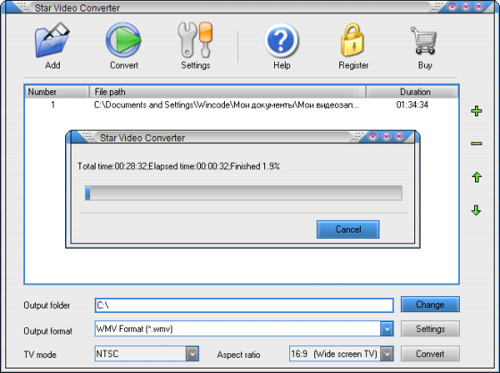 Star Video Converter предназначена для преобразования видеофайлов в AVI, MPEG, VCD, DVD, WMV. Она имеет встроенные кодеки и ей можно пользоваться сразу после установки. Программа поддерживает форматы AVI/DIVX/XVID/DIV, MPEG/MPG/DAT, WMV/ASF/ASX, RM/RMVB, MOV/QT, 3GP/3G2, MP4/M4V, и FLV.