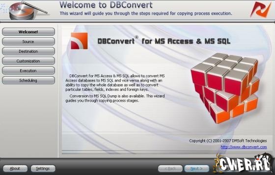 Эффективный инструмент для конвертирования баз данных MS Access (MDB) в MySQL и наоборот - MySQL в MS Access. При закрытом доступе к базе данных MySQL данные могут быть сохранены в PHP скрипт либо в дамп-файл в виде SQL запросов. DBConvert for Access & MySQL позволяет конвертировать базы данных путем несложного определения настроек в построенном по принципу Wizard приложении. Хотите ли вы скопировать базу данных полностью либо конвертировать только некоторые ее таблицы - программа поможет Вам в этом. Реализована возможность выполнять частичную конвертацию данных с помощью наложения фильтров.