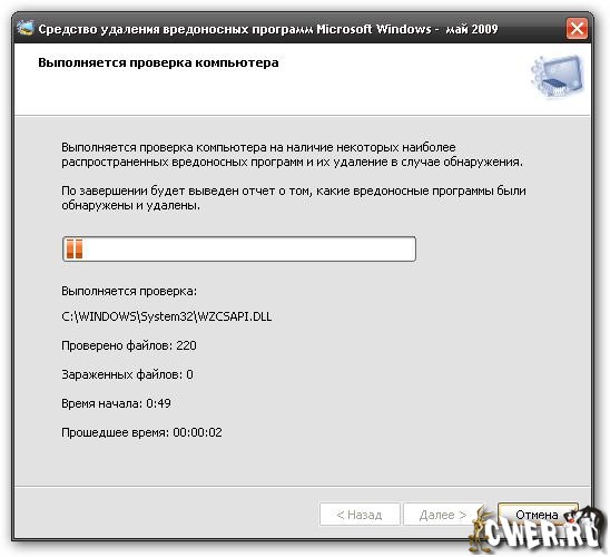 Microsoft Malicious Software Removal Tool - утилита для обнаружения и удаления наиболее распространенных вирусов. Microsoft Malicious Software Removal Tool выполняет проверку компьютера на наличие наиболее распространенных вредоносных программ (включая Blaster, Sasser и Mydoom) и удаляет их в случае обнаружения. Поскольку компьютеры, будучи зараженными, на первый взгляд могут работать нормально, специалисты из Microsoft рекомендуют запустить данное средство даже, если вам кажется, что с компьютером все в порядке. Утилита не требует инсталляции. С её помощью сканирование системы на наличие вирусов занимает всего несколько секунд. Из дополнительных опций можно отметить предоставление детальной информации о том или ином вирусе, распознаваемом утилитой (для этого нужно кликнуть мышкой на название вируса и перейти на сайт Microsoft с информацией о нём).