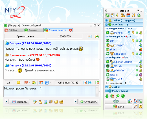 Oбновилась QIP Infium — бесплатная мультипротокольная программа обмена мгновенными сообщениями по протоколам OSCAR, Jabber, Mail.Ru Agent, IRC и XIMSS(SIP).
