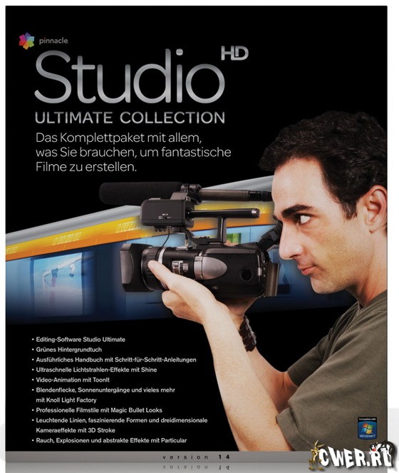 Pinnacle Studio Ultimate 12 - программа для домашнего видеомонтажа с расширенными возможностями, интуитивно понятным интерфейсом и новой функцией «доступ по требованию», обеспечивающей видеолюбителям сотни разнообразных дополнительных возможностей профессионального качества, подобных эффектам картинка в картинке и другим, стабилизации изображения, автоматизации редактирования, цветовой коррекции, удалению шумов и цифровому объемному звуку.