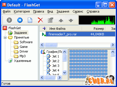 FlashGet - менеджер загрузок, предназначенный для ускорения загрузки файлов и удобного управления файлами во время загрузки и после нее.