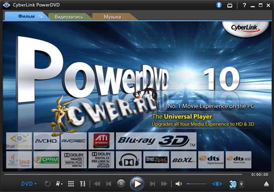 CyberLink PowerDVD - один из самых лучших современных программных проигрывателей, позволяющий осуществлять интерактивный просмотр дисков DVD-Video и Video CD на вашем компьютере. К основным достоинствам данного проигрывателя можно отнести высокое качество изображения, удобный интерфейс со скинами и хорошую настраиваемость. Кроме просмотра фильмов с компакт-дисков (DVD и Video CD), PowerDVD позволяет проигрывать файлы форматов, поддерживаемых Windows Media Player, а также MPEG1 и MPEG2. В программе также имеются функции захвата кадров в файл формата BMP, повтора участка записи, регулировки параметров отображения, запоминания момента остановки, поддержки колеса прокрутки мыши и многие другие возможности. С помощью функции Movie Collection вы можете создавать собственный каталог вашей коллекции фильмов, храня рецензии, личные примечания, информацию об обложке фильма, а также обмениваться этими данными с другими пользователями с помощью сервиса MoovieLive.