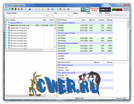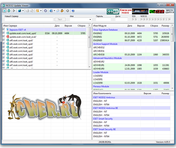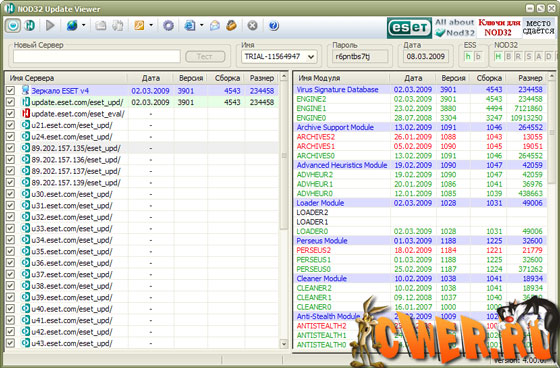 NOD32 Update Viewer позволяет расширить функциональность и повысить наджность получения обновлений для антивируса ESET NOD32, EAV и ESS. Программа фактически решает все проблемы с обновлением баз популярного антивируса и, таким образом, без взлома делает его бесплатным!