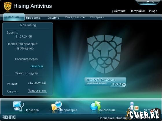 Rising Antivirus 2009 Free - бесплатная антивирусная программа с многоязычным интерфейсом (поддерживается английский, немецкий, русский и китайский традиционный). Обеспечивает защиту компьютера от всех видов вирусов, троянов, сетевых червей, руткитов (Rootkits) и других вредоносных программ.