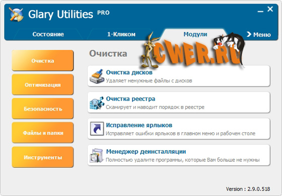 Данное приложение позволяет пользователю избавиться от ненужных файлов, от устаревших регистрационных записей и истории Интернет-активности (посредством установки различных плагинов, можно добиться полной совместимости данного приложения с более чем 45 различным программами).