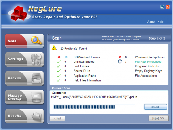 RegCure - утилита для очистки и оптимизации системного реестра операционных систем семейства Windows. Программа позволяет исправить неправильные значения, ключи и разделы в реестре, повышает стабильность и быстродействие ПК, сканирует жесткий диск в поисках битых ярлыков, создает резервную копию реестра. Утилита обладает понятным интерфейсом, не требует тонкой настройки.