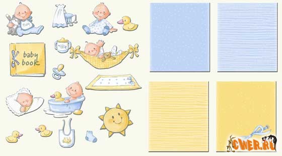 5 фонов размером 3600х3600пк в JPG формате и 20 файлов с детскими картинками в PNG формате