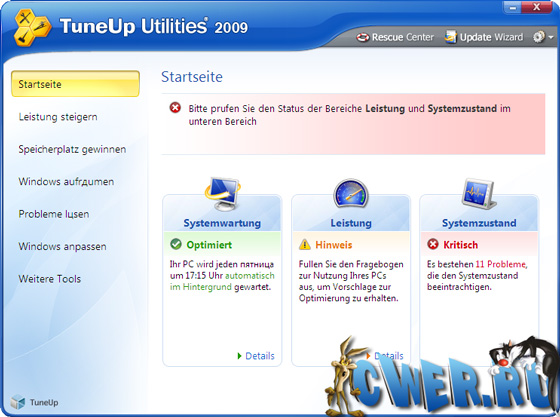 TuneUp Utilities 2009 - компактный пакет системных утилит с мощными возможностями: чистка и исправление ошибок системного реестра, восстановление и безвозвратное удаление данных, оптимизация оперативной памяти, менеджер процессов и автозагрузки, корректное удаление ставшего ненужным ПО, управление сетевыми параметрами, оптимизация интернет-соединения, настройка "скрытых" параметров системы, подробная информация о системе и многое другое.
