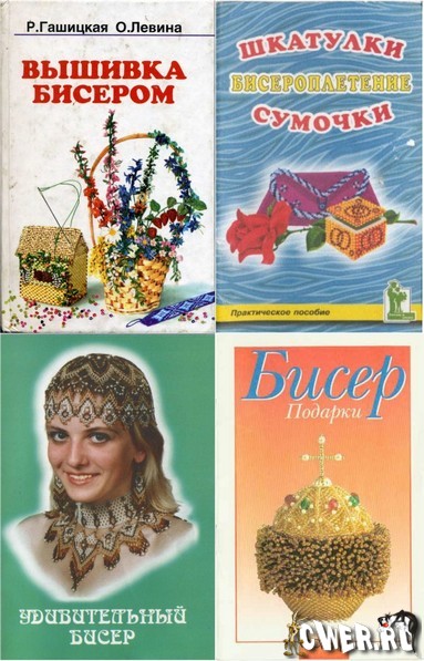 Сборник из 4 книг в формате djvu и pdf: "Бисероплетение. Шкатулки и сумочки" Васильева И.И.; "Удивительный бисер" Ганич Е.Н.; "Волшебный бисер. Вышивка бисером" Гашицкая Р.П., Левина О.В.; "Бисер. Подарки" Зотова М. Множество схем плетения с подробным описанием.