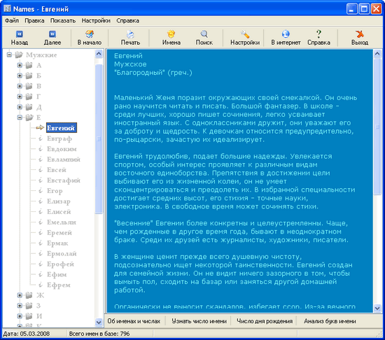 Names 1.5.5 - новая версия программы представляющей собой справочник, который содержит информацию о значении и характеристике имен, используемых в России и странах ближнего зарубежья...