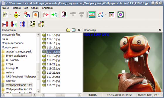 XnView - утилита для просмотра и преобразования графический файлов. Отличный просмотрщик графических файлов, имеет удобный интерфейс и высокую скорость работы, поддерживает более 400 графических форматов, умеет конвертировать 50 форматов между собой. XnView может производить такие операции над графикой, как обрезка, изменение размера, гаммы-контраста-яркости-баланса, печать, допускает применение к изображению разнообразных фильтров, и проделывать над файлами многое другое, причем все эти операции и фильтры (в любом сочетании) можно применять сразу к большому количеству файлов, а преднастройки - сохранять в качестве сценариев и использовать позже.