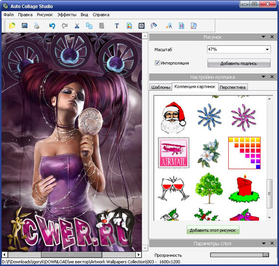 AMS Software Photo Collage Maker - удобная программа для создания оригинальных композиций, состоящих из фона и нескольких фотографий. Создать красивый коллаж в программе можно быстро и просто: достаточно выбрать фоновое изображение из каталога, добавить пару-тройку собственных фотографий и поэкспериментировать с различными эффектами.